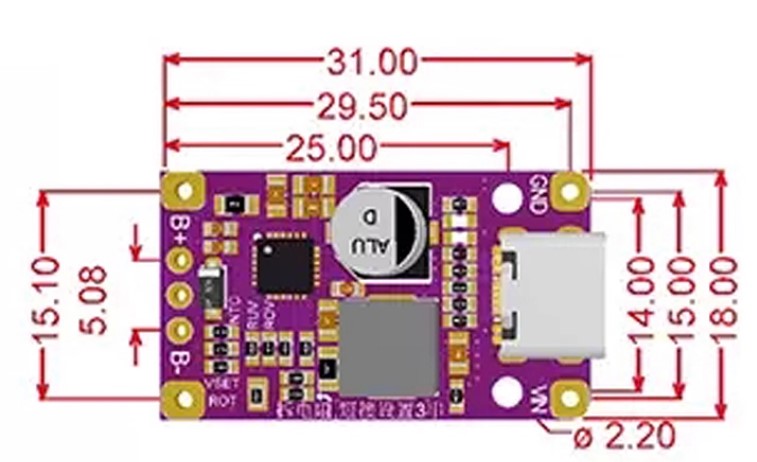 Данный модуль представляет собой современное и эффективное решение для быстрой зарядки сборок из двух или трех последовательно соединенных литиевых аккумуляторов (2S, номиналом 7.4В или 3S, номиналом 11.1В). Его ключевое преимущество — поддержка протокола быстрой зарядки Quick Charge (QC), что позволяет при использовании совместимого зарядного устройства значительно сократить время заряда.