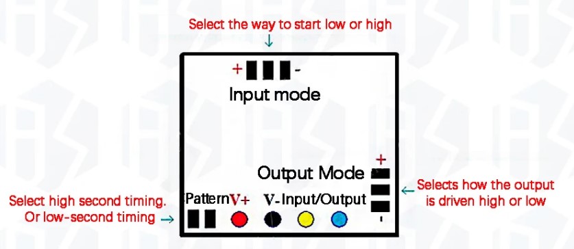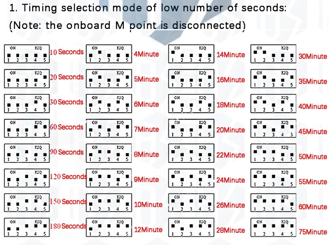 Регулировка времени с помощью DIP-переключателей может производиться в любой момент, когда модуль находится под напряжением, но не находится в активном режиме отсчета.