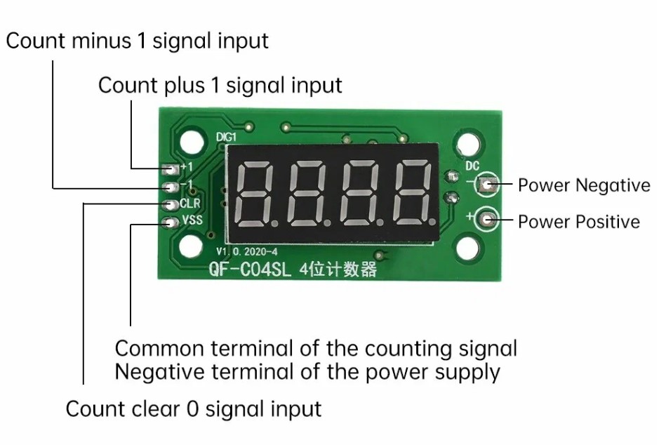 Цифровой счетчик импульсов на семисегментных индикаторах 5-24V (4 разряда, 0-9999)