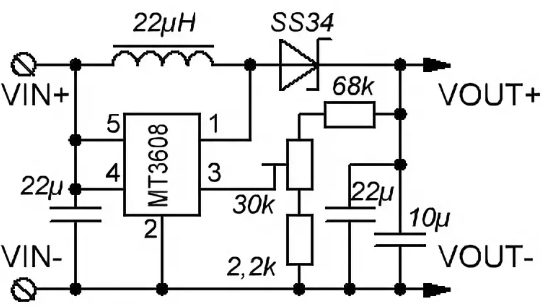Выходное напряжение: 5-28 вольт. Настраивается подстроечным резистором (максимальное рекомендуемое напряжение 24V).