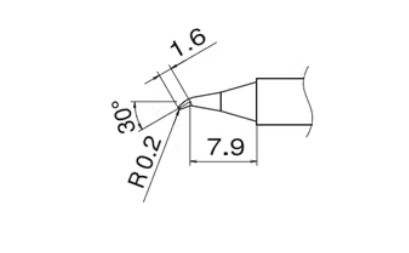 Микроскопический наконечник: Радиус острия составляет всего 0.2 мм, что делает это жало идеальным инструментом для прецизионного монтажа и демонтажа мельчайших SMD-компонентов, таких как чип-резисторы, конденсаторы и выводы микросхем с мелким шагом .
