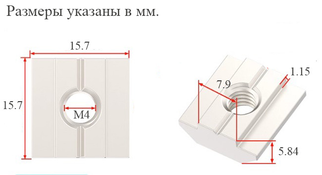 Гайка скользящая M4 для крепления на ал. профиль 3030 (сталь)