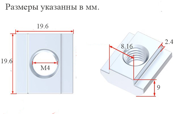 Гайка скользящая для алюминиевого конструкционного профиля 4040, миллиметровая резьба M4.