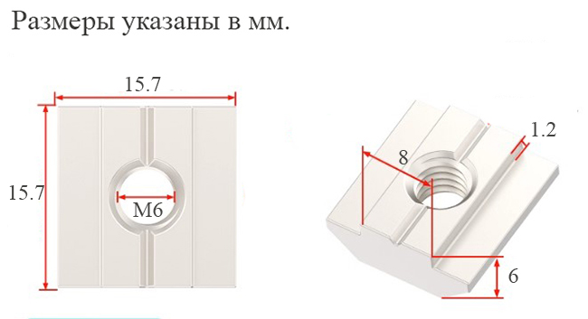 Гайка скользящая M6 для крепления на ал. профиль 3030 (сталь)