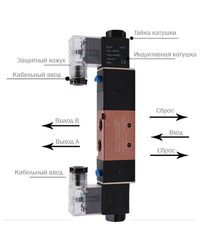 Пневматический электромагнитный клапан 4V230C-08 DC24V 4.8W