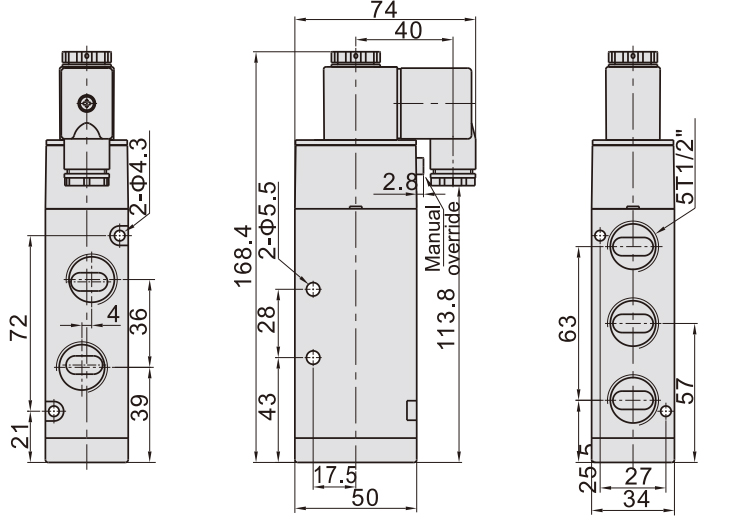Пневматические электромагнитные клапаны 4V410-15 - пятилинейные двухпозиционными (5/2) пневматические распределители с односторонним электропневматическим управлением и пружинным возвратом золотника в исходное положение. Данные клапаны применяются в различного рода пневматических приводах и служат для управления направлением потоков рабочей среды пневмосистемы (сжатый воздух), её пуском и остановом.