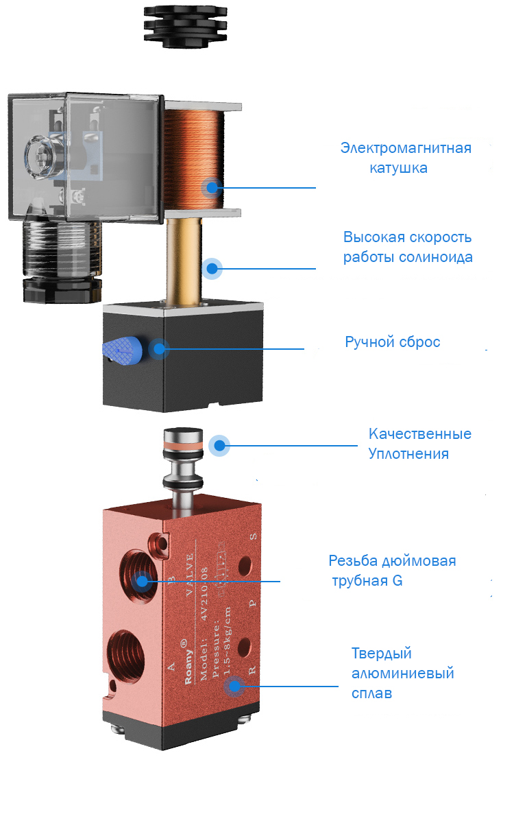 Пневматический электромагнитный клапан 4V210-08 DC24V 4.8W