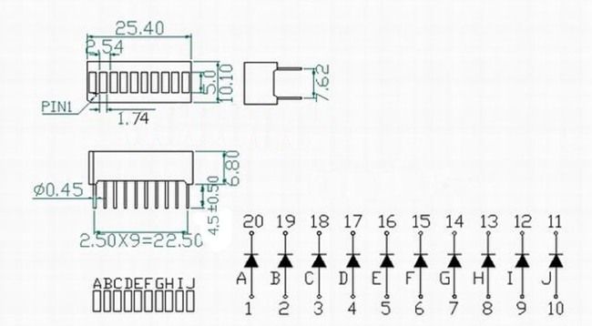 Десятисигментный изумрудно-зеленый индикатор полоса KYX-B10BGG..