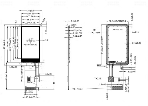 Дисплей TFT IPS с емкостным сенсором 1.9" 170*3200 на ST7789V, SPI