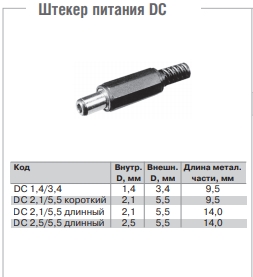 Штекер питания 5,5*2,5 мм, L-9,5 мм (C02)